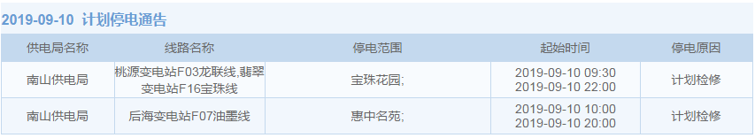 據(jù)中國(guó)南方電網(wǎng)最新消息,9月13日起至9月20日,深圳這部分地區(qū)要停電了!此前,晶報(bào)APP還報(bào)道了8月27日至9月12日深圳停電的情況:(8月27日至9月12日,深圳這些地方停電!快看影響你家沒(méi)),快來(lái)看看有沒(méi)有你家的吧。