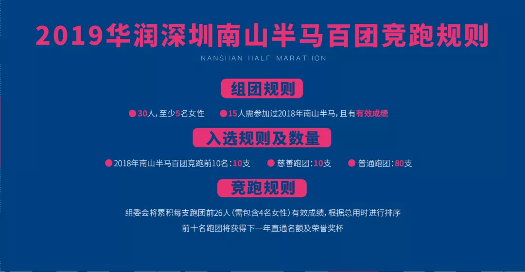 注:30名跑團(tuán)團(tuán)員中,至少有15人及以上人數(shù)參加過(guò)2018華潤(rùn)深圳南山半程馬拉松賽,否則不予以排名入選資格