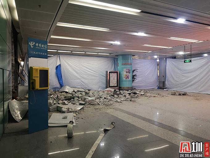 記者在事故現(xiàn)場看到,受損車輛已經被拖走,大廳內一地瓦礫