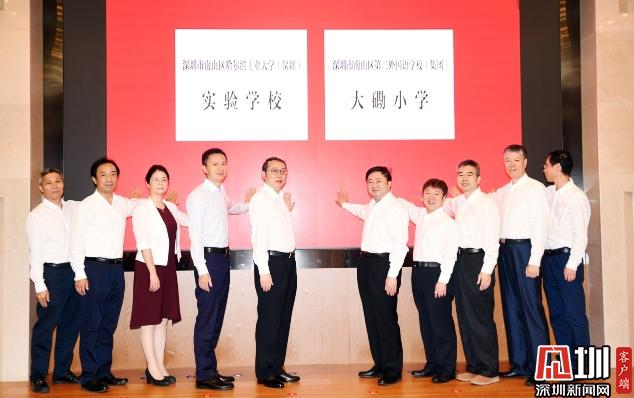 活動(dòng)中,南山區(qū)哈爾濱工業(yè)大學(xué)(深圳)實(shí)驗(yàn)學(xué)校及南山區(qū)第二外國(guó)語(yǔ)學(xué)校(集團(tuán))大磡小學(xué)兩所學(xué)校正式揭牌。南山區(qū)委書(shū)記王強(qiáng),哈工大(深圳)黨委書(shū)記吳德林,南山區(qū)委副書(shū)記、代區(qū)長(zhǎng)黃湘岳,深圳大學(xué)城管理辦公室副主任戴興毅、哈工大(深圳)副校長(zhǎng)姚英學(xué)、南山區(qū)副區(qū)長(zhǎng)練聰、哈工大(深圳)工會(huì)負(fù)責(zé)人張敏等出席簽約儀式,并為兩所新校揭牌。南山區(qū)政協(xié)副主席、區(qū)教育局局長(zhǎng)劉根平主持儀式。