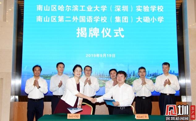 王強(qiáng)強(qiáng)調(diào),黨中央、國(guó)務(wù)院賦予深圳先行示范區(qū)的使命,對(duì)教育事業(yè)發(fā)展提出了新的要求。南山作為深圳的教育高地,肩負(fù)著更加崇高的使命和社會(huì)各界更高的期盼。他希望,作為國(guó)家“985工程”建設(shè)高校和“雙一流”建設(shè) A類高校的哈工大(深圳)能充分發(fā)揮豐富的資源優(yōu)勢(shì)和卓越的工科特色,與南山區(qū)精誠(chéng)合作,將哈工大實(shí)驗(yàn)學(xué)校打造成特色顯著、群眾滿意的現(xiàn)代化優(yōu)質(zhì)品牌學(xué)校,在優(yōu)化合作辦學(xué)模式的道路上做好先行示范;希望南二外集團(tuán)能集聚集團(tuán)智慧力量,全面推進(jìn)具有80多年辦學(xué)歷史的大磡小學(xué)內(nèi)涵發(fā)展,在提升集團(tuán)化治理效能方面做好先行示范。