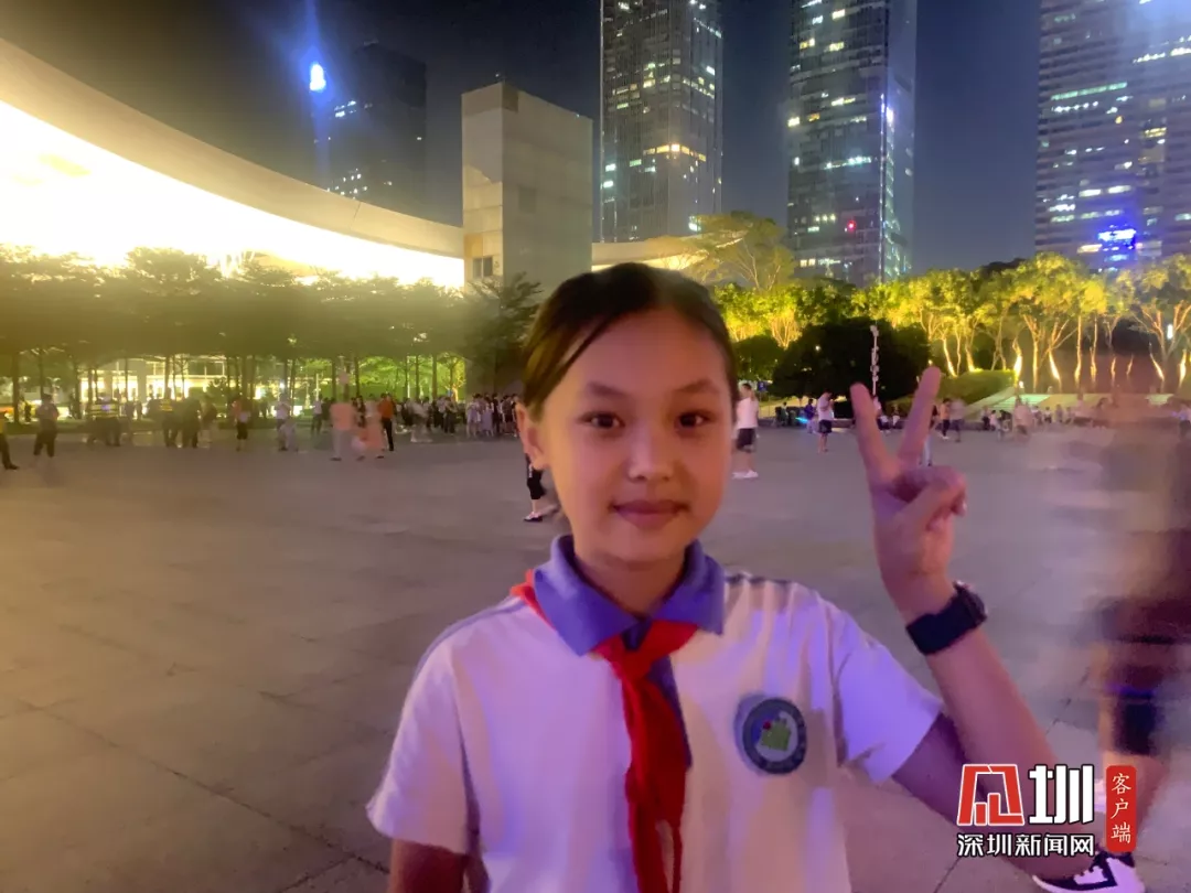 【福田區(qū)】一位五年級小學(xué)生形容這場燈光秀“震撼”“美好”,她從歷史書上知道新中國經(jīng)歷了很多,看到新中國和深圳越來越棒,覺得非常幸福。