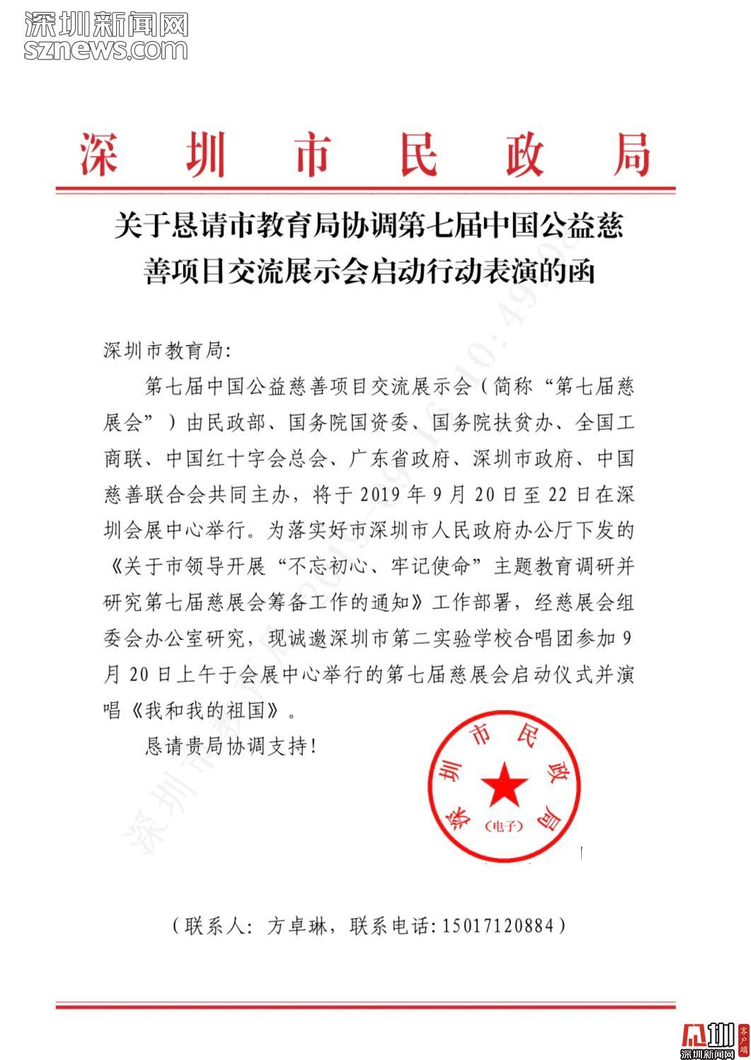 見(jiàn)圳客戶端、深圳新聞網(wǎng)2019年9月21日訊 (見(jiàn)圳客戶端、深圳新聞網(wǎng)記者 陳彬)9月20日上午,第七屆中國(guó)公益慈善項(xiàng)目交流展示會(huì)(以下簡(jiǎn)稱(chēng)“中國(guó)慈展會(huì)”)在深圳會(huì)展中心拉開(kāi)帷幕。深圳市第二實(shí)驗(yàn)學(xué)校 (以下簡(jiǎn)稱(chēng)“二實(shí)”)花語(yǔ)合唱團(tuán)為第七屆中國(guó)慈展會(huì)開(kāi)幕助演。