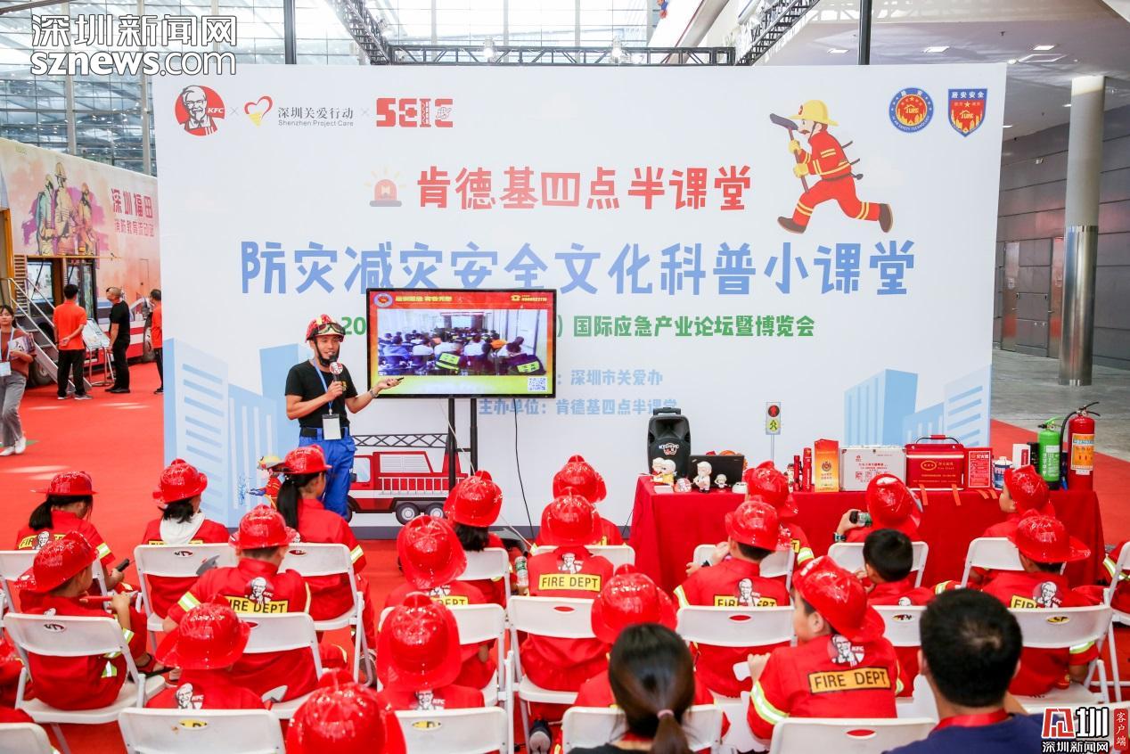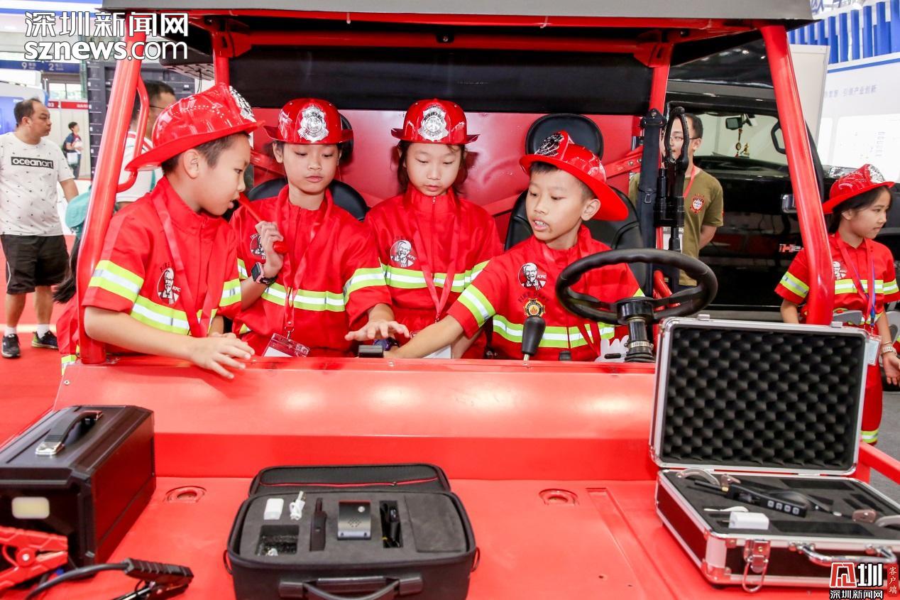 見圳客戶端、深圳新聞網(wǎng)2019年9月23日訊(見圳客戶端、深圳新聞網(wǎng)記者 陳彬)頭戴消防安全帽,手持mini滅火器,身穿靚麗正紅的消防服裝,9月21日,在深圳會展中心的深圳國際應(yīng)急博覽會上,一群可愛的小小消防員們吸引了全場的目光。原來,這是“肯德基四點(diǎn)半防災(zāi)減災(zāi)科普小課堂”正在深圳國際應(yīng)急博覽會上舉行。30名小朋友們裝備齊全,神采奕奕地 cosplay了一把“小小消防員”。他們認(rèn)真聽消防教官的科普演講,參觀消防教育科普雙層巴士,近距離感受消防車、應(yīng)急無人機(jī)等專業(yè)的防災(zāi)救援高科技裝備的硬核魅力……獨(dú)特的消防體驗(yàn)讓同學(xué)們十分興奮。