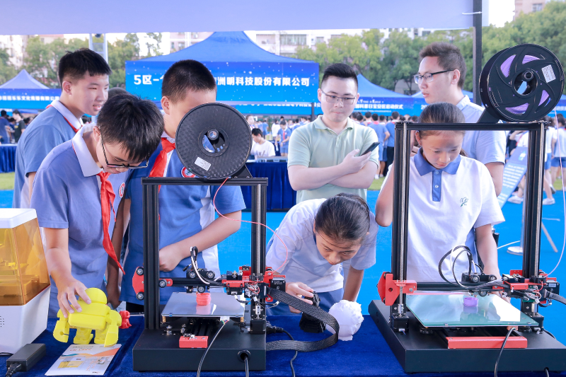 據(jù)了解,“禮贊共和國,智慧新生活”是今年全國科普日的主題。本次全國科普日寶安區(qū)活動分為航天科技裝備、太空知識長廊、氫能轉(zhuǎn)化實驗、 VRAR活動體驗、寶安區(qū)科普教育基地介紹等五個版塊,呈現(xiàn)出航天科技與太空知識相結(jié)合的科普盛宴。除此之外,深圳市洲明科技股份有限公司帶來了智慧路燈及節(jié)能系統(tǒng)的介紹;深圳市愛能特科技有限公司的3D打印讓學(xué)生們大開眼界,想像的物品只要設(shè)計出來就能打??;韓端科技 (深圳)有限公司帶來的機(jī)器人舞蹈揮舞著國旗震撼了全場……操場上、實驗室里處處散發(fā)出著科技的魅力。