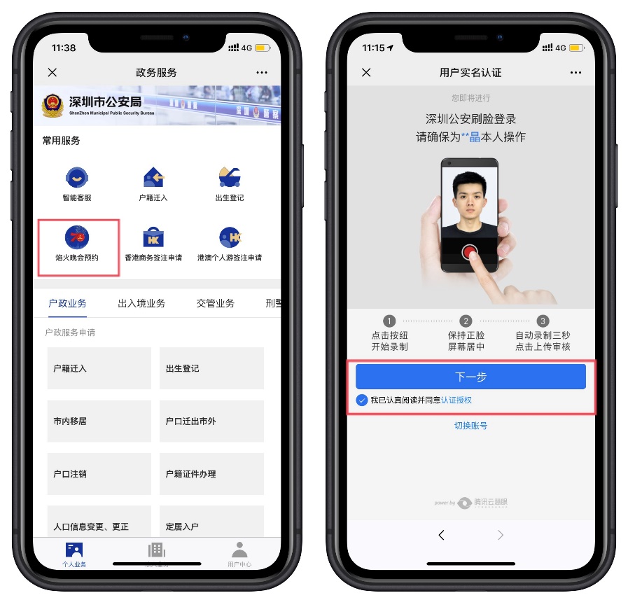 1.關(guān)注“深圳公安”微信公眾號,選擇“民生”欄,點擊焰火晚會預(yù)約,通過人臉認證后即可進入預(yù)約頁面,如下圖所示: