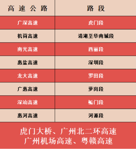 另外,深圳地區(qū)南光、龍大、鹽排及鹽壩高速也已于2016年2月7日起實施“零費率”免費通行,車流較以往有大幅增長,廣大車友需謹慎行駛。