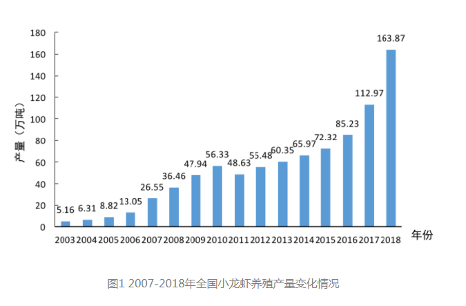 隨著生活水平的提高,人們對(duì)“食”提出了更高要求,色香味俱全的美食往往也更讓人難以抗拒?;疱仧拘↓埼r作為當(dāng)代青年人的“最愛”,已獨(dú)得恩寵許多年,尤其是小龍蝦。每年夏季,是吃小龍蝦的旺季。據(jù)部分媒體不完全統(tǒng)計(jì),光南京一個(gè)城市每年的龍蝦消費(fèi)量都超萬噸,而北上廣深蓉5個(gè)城市,小龍蝦門店數(shù)均超3000家。此外,據(jù)2019年中國小龍蝦產(chǎn)業(yè)發(fā)展報(bào)告顯示,小龍蝦產(chǎn)業(yè)總產(chǎn)值達(dá)3690億元,占據(jù)了第三產(chǎn)業(yè)產(chǎn)值的主導(dǎo)地位。這種巨大的消費(fèi)力帶動(dòng)了小龍蝦養(yǎng)殖業(yè)的發(fā)展,到2018年,全國小龍蝦養(yǎng)殖產(chǎn)量已超163萬噸。