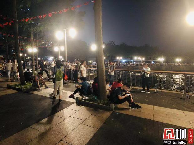10月1日晚上9:00,看完焰火表演的市民仍不愿離去,想要留下來看今日最后一場(chǎng)燈光秀。