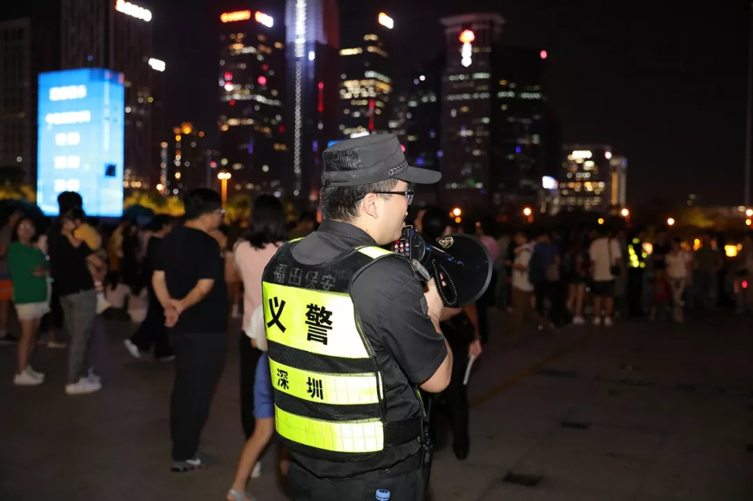 此外,福田公安分局根據(jù)市民中心和蓮花山頂廣場(chǎng)的每日人流負(fù)荷情況實(shí)時(shí)調(diào)整,及時(shí)協(xié)調(diào)城管調(diào)控?zé)艄庑悴コ鰰r(shí)間并加演,避免人流停滯,緩解疏導(dǎo)壓力。值得一提的是,為了方便市民夜間行走,觀賞區(qū)特地“開辟”了幾條新的應(yīng)急道路,并在所有“黑暗死角”都加裝了應(yīng)急燈。福田公安分局指揮處處長(zhǎng)張保軍表示:“在安保警力多次實(shí)地巡查后,及時(shí)發(fā)現(xiàn)問題并整改、疏通光線不足及堵塞人群的道路,使市民們?cè)谟^看完燈光秀后能夠更加安全、快捷地離開?!背艘酝?,在人流密集的燈光秀現(xiàn)場(chǎng),孩童走失、物品遺失的情況也有發(fā)生,安保人員不斷地通過廣播尋人、尋物,進(jìn)行實(shí)名登記,盡心盡力地為市民、游客解決切身難題。