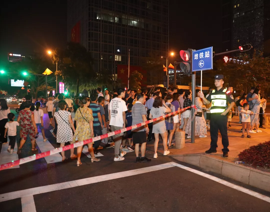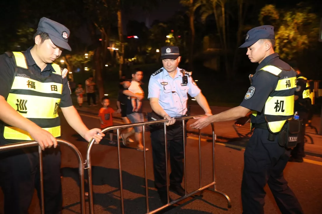 “同一個(gè)時(shí)間、同一個(gè)地點(diǎn),如何保證十幾萬人看完燈光秀,安全、有序、祥和地離開,這不是一個(gè)簡(jiǎn)單的安保工作,是一個(gè)系統(tǒng)工程。”福田區(qū)副區(qū)長(zhǎng)、公安分局局長(zhǎng)江峰表示。本次燈光秀疏導(dǎo)工作在國(guó)慶節(jié)前已做了預(yù)案,警力每天下午五點(diǎn)半就全部上崗,保證所有的閘口人員就位,封控福中三路和深南大道輔道,利用隔離帶當(dāng)鐵馬,人流北進(jìn)南出?!拔覀兺ㄟ^在廣場(chǎng)各出入口及周邊路段,加裝地鐵、公交指示牌,全程指引疏導(dǎo)人群走向。對(duì)市民中心地鐵站六個(gè)出入口進(jìn)行單循環(huán)規(guī)劃,所有觀眾進(jìn)場(chǎng)都是單行線,這樣人群不會(huì)形成對(duì)沖,保證疏導(dǎo)有序進(jìn)行。”福田公安分局副局長(zhǎng)譚慶彬介紹道。