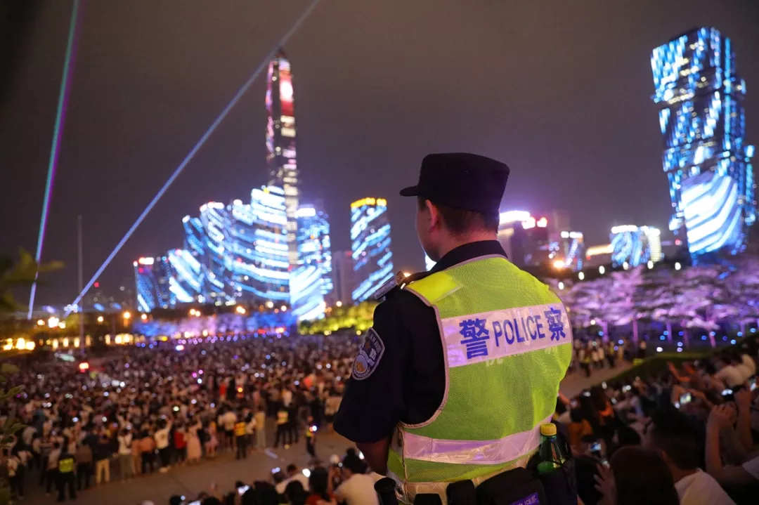 福田公安分局用堅守向祖國獻禮,此次燈光秀安保警力全力以赴、連續(xù)奮戰(zhàn),擔當使命、攻堅克難,強化重點部位管控,嚴密落實安全防范措施,確保了各場燈光秀表演活動安全進行,在絢爛燈光下,公安“藍”成最美風景線,默默守護大眾。