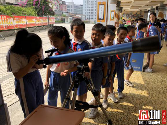 同學(xué)們爭相體驗(yàn)天文望遠(yuǎn)鏡