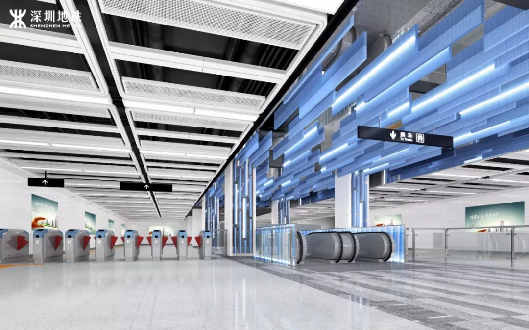 綜合考慮前海地下漫行系統(tǒng),在樓梯口部重點(diǎn)利用智慧科技及燈光設(shè)計(jì),表現(xiàn)前海特色,使之成為視覺(jué)焦點(diǎn),突出垂直交通樞紐,達(dá)到高效交通目的。