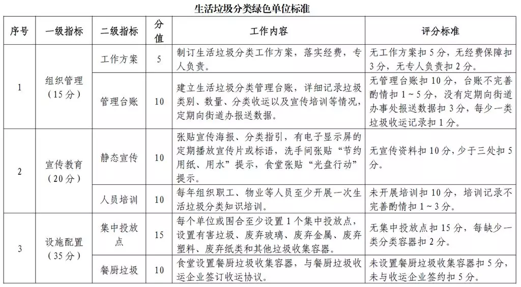 針對(duì)單位激勵(lì)對(duì)象不同,《辦法》還詳細(xì)制定了《生活垃圾分類綠色單位標(biāo)準(zhǔn)》《生活垃圾分類綠色學(xué)校標(biāo)準(zhǔn)》《生活垃圾分類綠色小區(qū)標(biāo)準(zhǔn)》等要求;針對(duì)個(gè)人激勵(lì)對(duì)象,也明確提出了垃圾分類督導(dǎo)員、志愿者、教師和其他從業(yè)人員等不同要求。