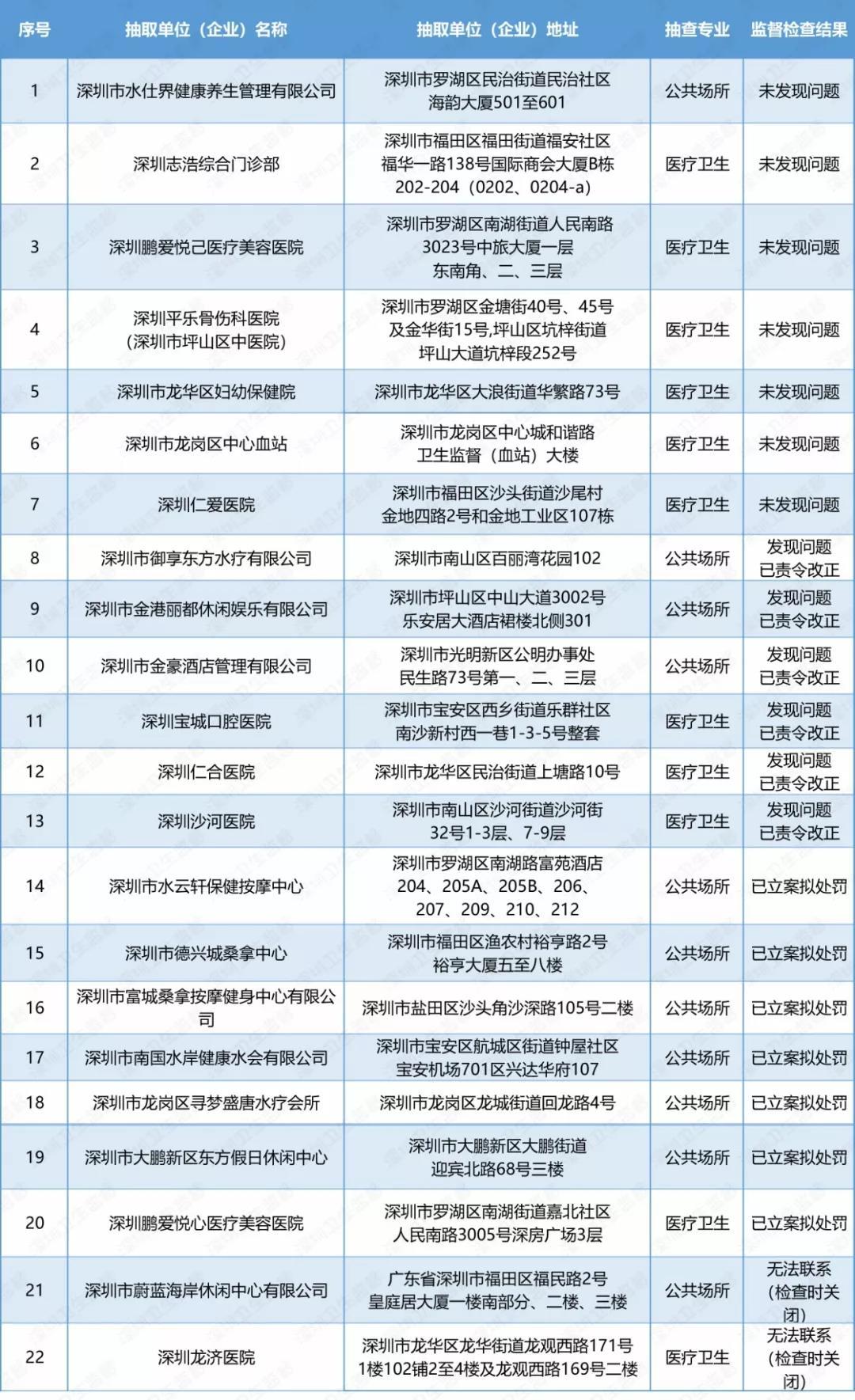 曝光!深圳9月雙隨機(jī)抽查,這7家公共場(chǎng)所和醫(yī)療機(jī)構(gòu)被處罰