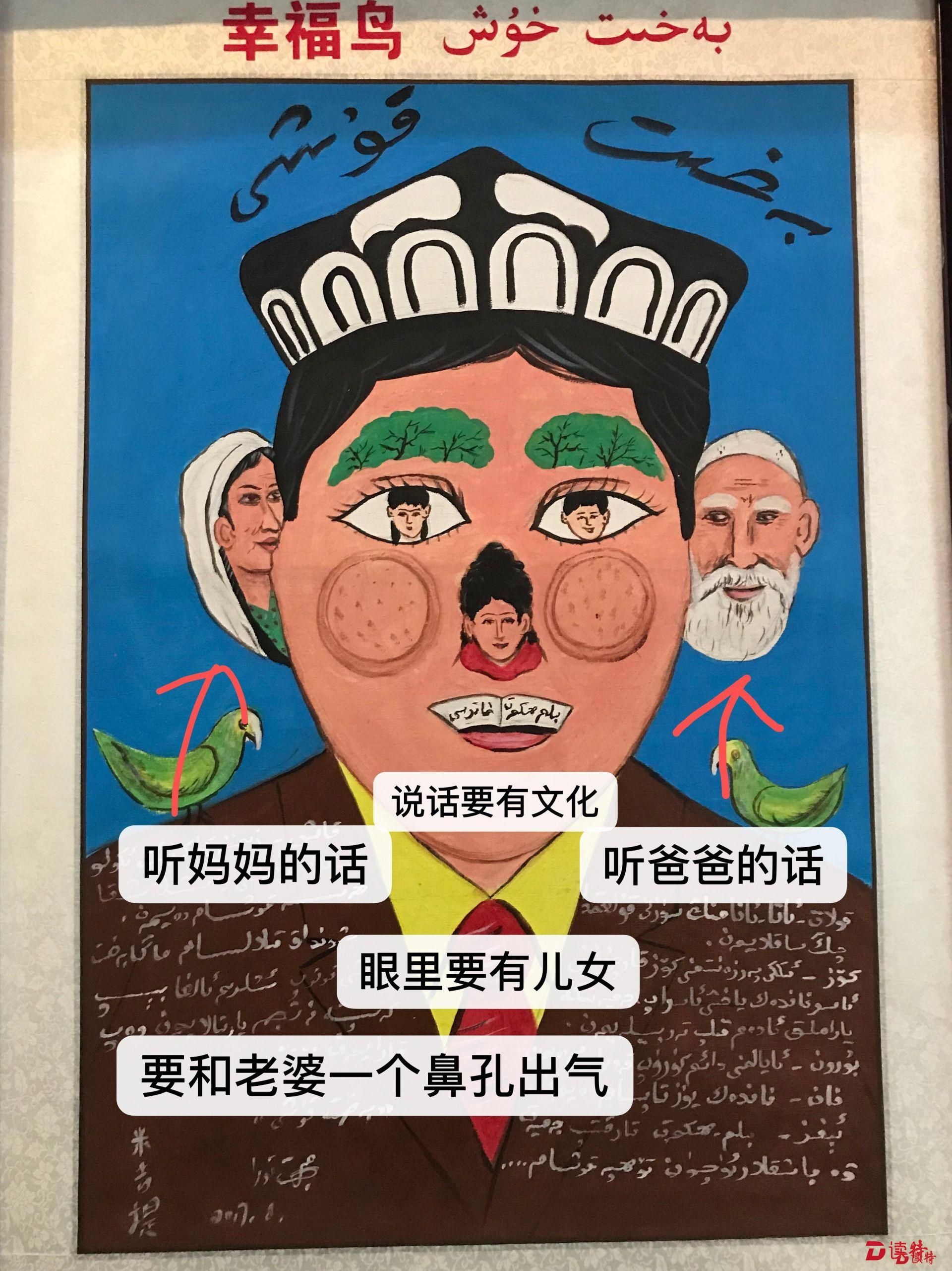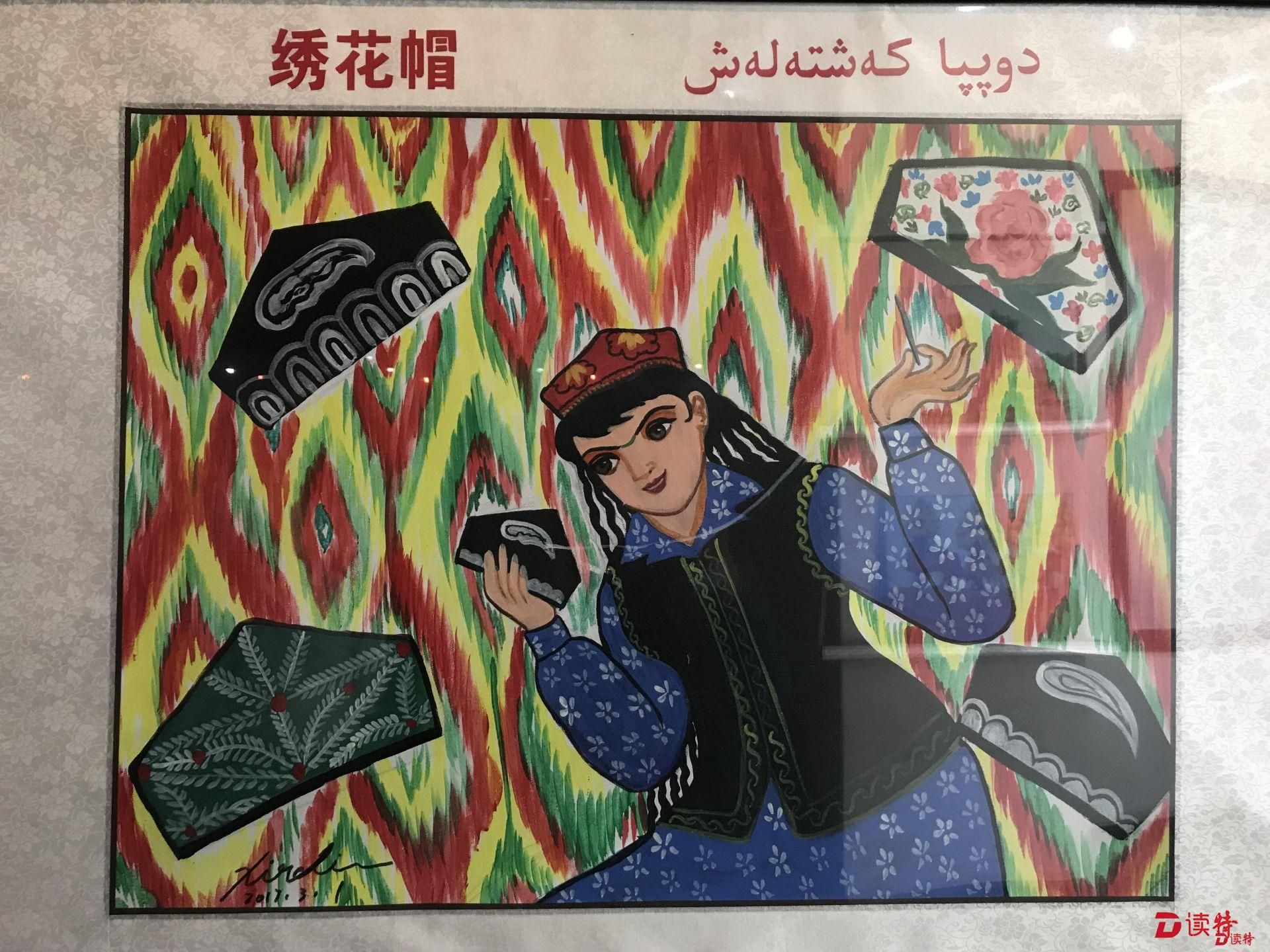 牧民的帳篷、肥壯的牛羊、路旁的榆錢樹……在刀郎農(nóng)名畫展廳里記者看到,平日生活中隨處可見的事物一一被刀郎人在勞動(dòng)和生活中用敏銳的目光捕捉,并將其躍然紙上,幽默中透視矛盾,夸張中充滿情緒宣泄,一幅幅作品活靈活現(xiàn)、色彩斑斕,讓人眼花繚亂,構(gòu)成了“刀郎農(nóng)民畫”畫家在處理反映現(xiàn)實(shí)主義和浪漫主義別具一格的藝術(shù)特色。