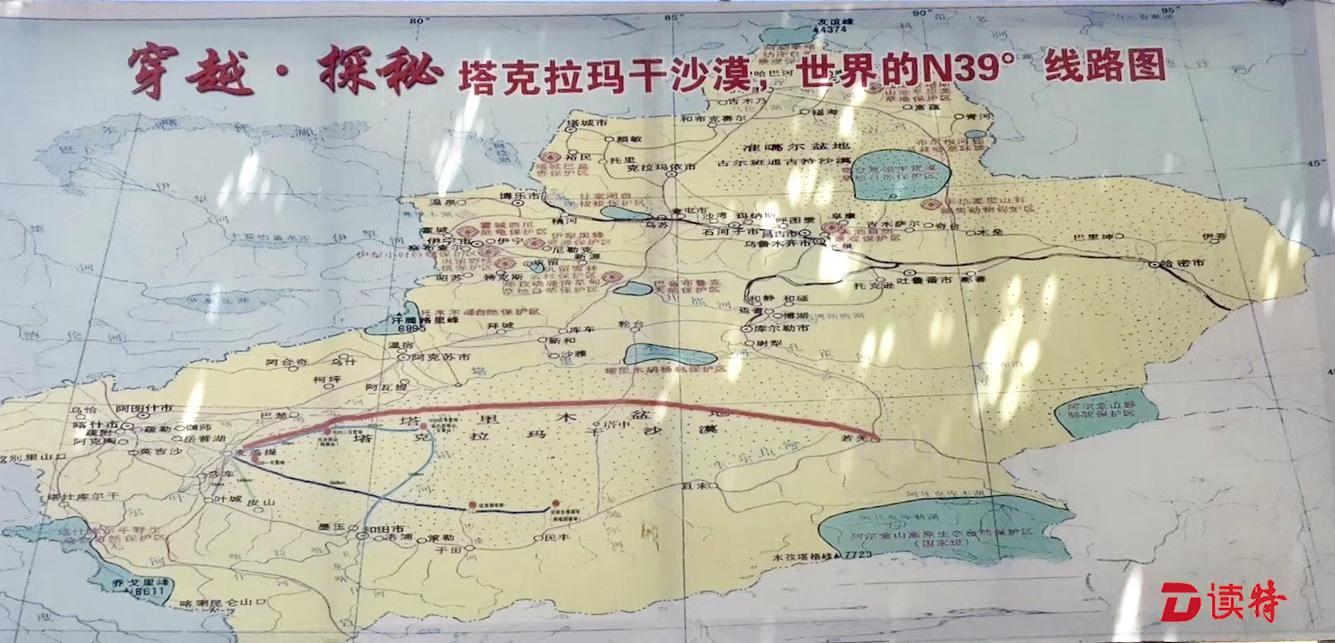1895年,來(lái)自瑞典的著名探險(xiǎn)家斯文·赫定率領(lǐng)他的團(tuán)隊(duì)沿著北緯39度線行進(jìn),試圖橫穿塔克拉瑪干沙漠,但由于對(duì)困難的估計(jì)不足,他和他的團(tuán)隊(duì)只行進(jìn)了300公里便由于干渴和迷路幾乎死光了所有的隊(duì)員和駱駝,僥幸逃生的只有兩人,從那之后,N39便被眾多考古學(xué)家、探險(xiǎn)家與越野愛(ài)好者所熟知。