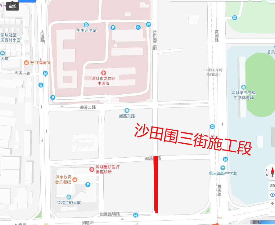 2019年10月28日至2020年1月31日共95天,封閉沙田圍三街(如意路口至閣溪三路口段)進行施工。原經(jīng)此路段通行的車輛,可改沿沙田圍二街或周邊其它道路通行。