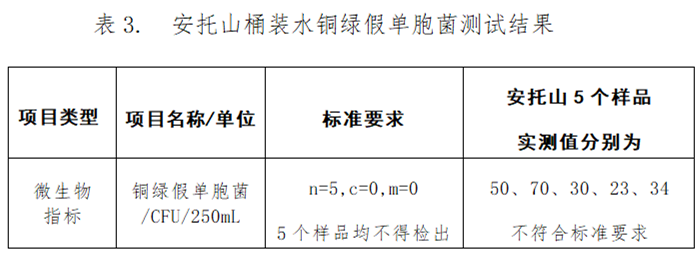 值得注意的是,安托山包裝飲用水檢出銅綠假單胞菌不符合國(guó)家標(biāo)準(zhǔn)要求,其他11款桶裝水的微生物指標(biāo)均符合國(guó)家要求。經(jīng)反饋,生產(chǎn)廠家深圳市廣進(jìn)源飲品有限公司回函聲稱不是他們公司生產(chǎn)的產(chǎn)品,但截至發(fā)稿廠家并未提供任何證明材料。