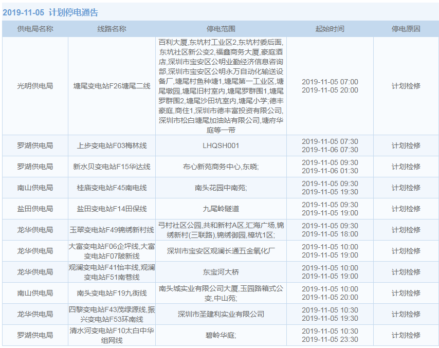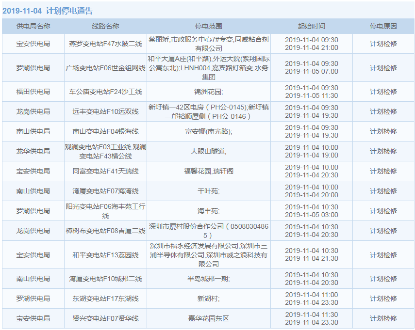 見(jiàn)圳客戶端·深圳新聞網(wǎng)2019年10月29日訊 據(jù)中國(guó)南方電網(wǎng)最新消息:11月1日至11月15日,深圳這些地方將停電!快來(lái)看看有沒(méi)有你家的吧。