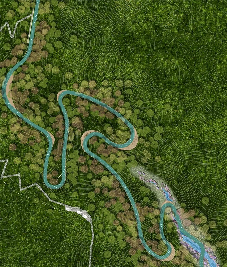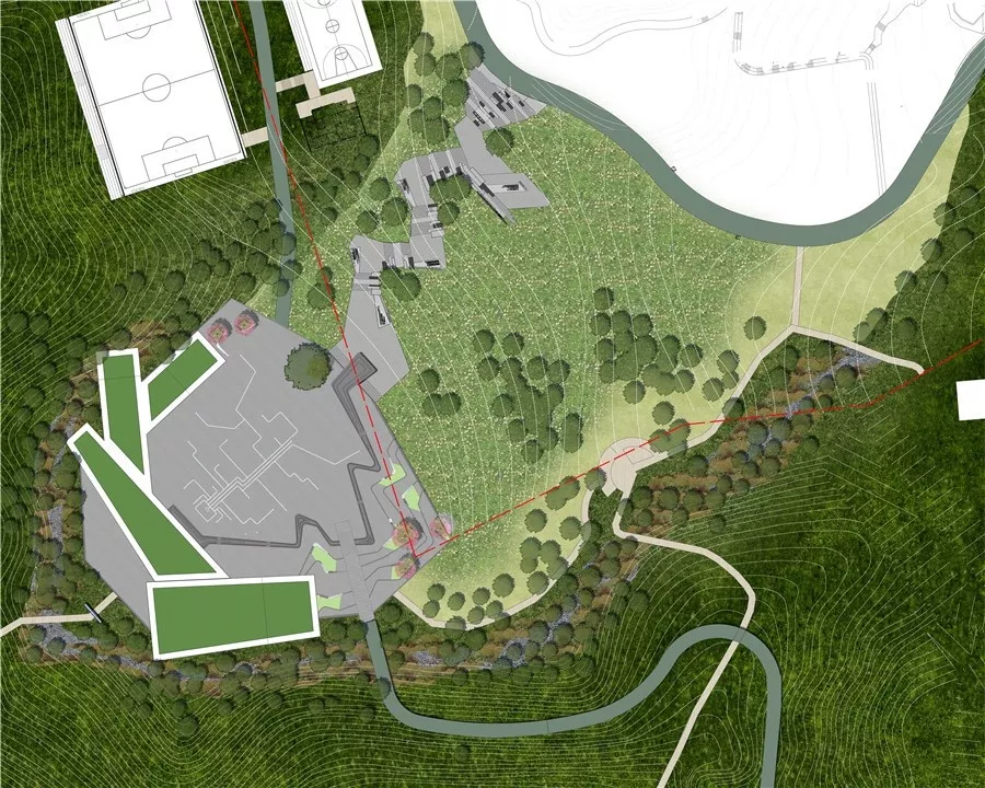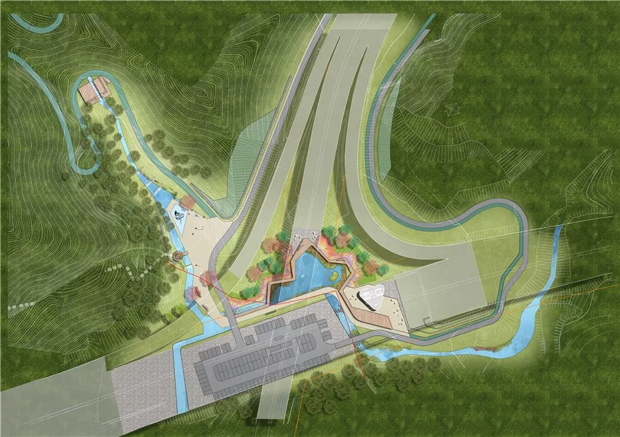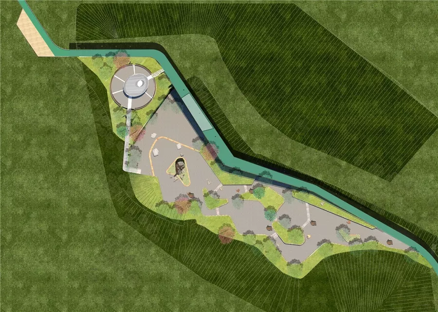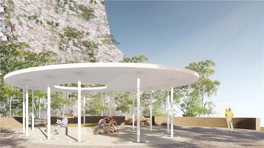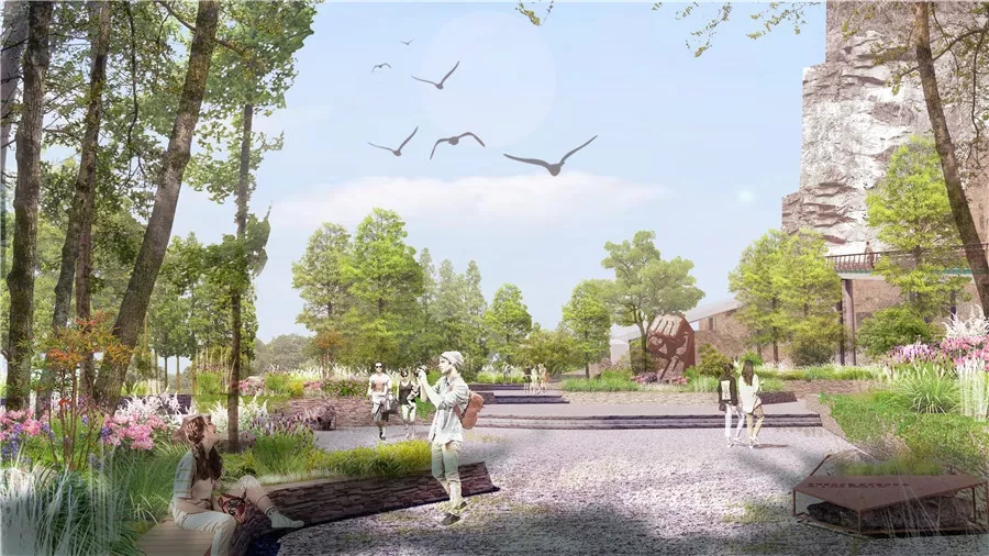 拼搏巖嶺的設(shè)計試圖恢復(fù)場地記憶,以石材結(jié)合銹板的形式塑造場地表達堅韌精神,同時保留現(xiàn)狀的巖生植物表達頑強拼搏的生命力。