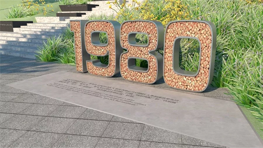 改革之路總體長度為120米,蜿蜒曲折的改革之路寓意著深圳人才生態(tài)從無到有,從有到優(yōu)。從深圳市成立特區(qū)開始,在深圳人才改革發(fā)展之路上選取了21件人才大事件,以時間軸的方式進行串聯(lián),其中8個里程碑式的大事件以立體年代數(shù)字方式呈現(xiàn),其他13個重要節(jié)點以石階雕刻的方式呈現(xiàn),展現(xiàn)了深圳對人才政策和制度的探索,代表著深圳在不同時期為求賢引才而做出的革新。