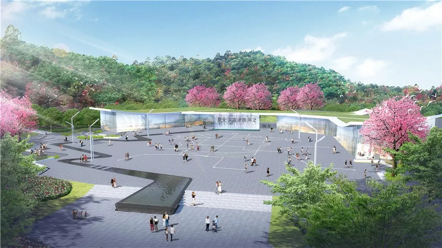 群賢廣場取名源于《蘭亭集序》中的“群賢畢至”,寓意匯聚天下賢能之才。廣場占地面積約5600平方米,主要由花崗巖鋪設(shè)而成。廣場作為人才綠道示范段的主題景點(diǎn),象征著深圳人才門戶。圍繞習(xí)近平總書記提出的“聚天下英才而用之”的核心人才觀,打造群賢廣場作為每年11月人才節(jié)日的活動場地之一。借用《蘭亭集序》中“流觴曲水”的典故作為設(shè)計理念打造水景從廣場中彎曲而過,同時采用簡化的全國鐵路網(wǎng)鋪裝,寓意五湖四海、人才匯聚,歡迎全國乃至全世界的人才來深圳,為深圳發(fā)展添磚加瓦。