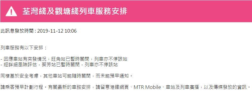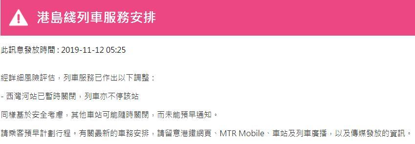 港鐵官網今早陸續(xù)發(fā)布其它線路列車服務調整信息,截至目前各線路情況如下: