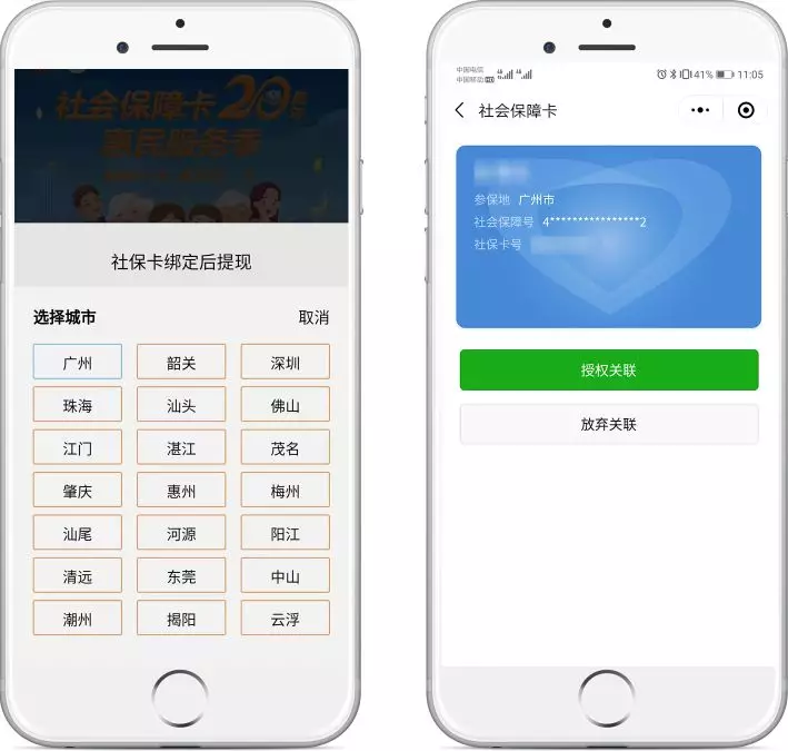 未綁定電子社??ǖ挠脩?,需要選擇所在地,并授權(quán)關(guān)聯(lián)社??娮幼C照。