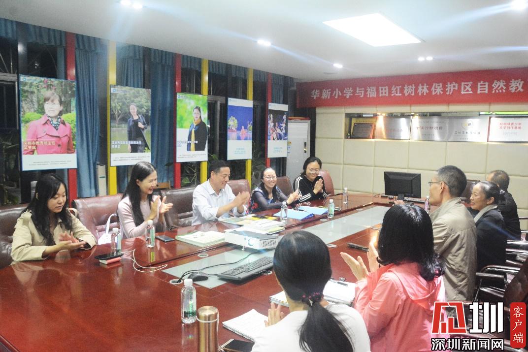 見(jiàn)圳客戶端·深圳新聞網(wǎng)2019年11月22日訊 (見(jiàn)圳客戶端、深圳新聞網(wǎng)記者 曹園芳 通訊員 鄧麗云)11月21日,華新小學(xué)與福田紅樹(shù)林保護(hù)區(qū)自然教育合作簽約儀式在華新小學(xué)二樓會(huì)議室舉行。與會(huì)的有華新小學(xué)張偉校長(zhǎng)、教導(dǎo)處潘春林主任、課程部鄧麗云主任、美術(shù)科組長(zhǎng)胡美莉老師、深圳市觀鳥(niǎo)協(xié)會(huì)會(huì)員陳苗老師,福田紅樹(shù)林保護(hù)區(qū)管理局王孟琪副局長(zhǎng)、保護(hù)區(qū)管理局宣教組兩位負(fù)責(zé)人胡柳柳與楊瓊、保護(hù)區(qū)管理局兩位宣教員石俊慧與陳佳熒。鄧麗云主任和楊瓊博士分別介紹了雙方的課程特色與實(shí)踐方案。