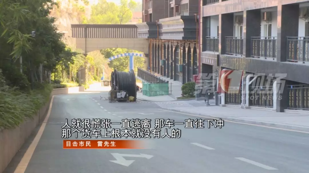監(jiān)控中的這一幕發(fā)生在羅湖區(qū)的一個(gè)建筑工地旁,事發(fā)時(shí)間是11月26號下午的1點(diǎn)左右,有幾位市民正走在一條陡坡路上,他們聽到后面?zhèn)鱽黹_車的聲音,下意識地往路邊躲避。