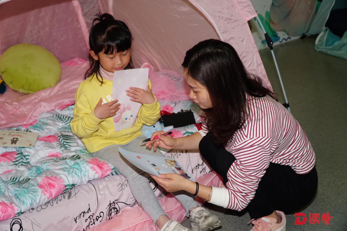 “寫給十年后的自己”媽媽指導(dǎo)女兒寫“夢想錦囊”的心愿。