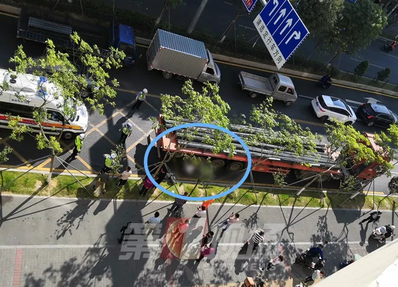 騎車(chē)女子被大型拖掛車(chē)卷入車(chē)輪底