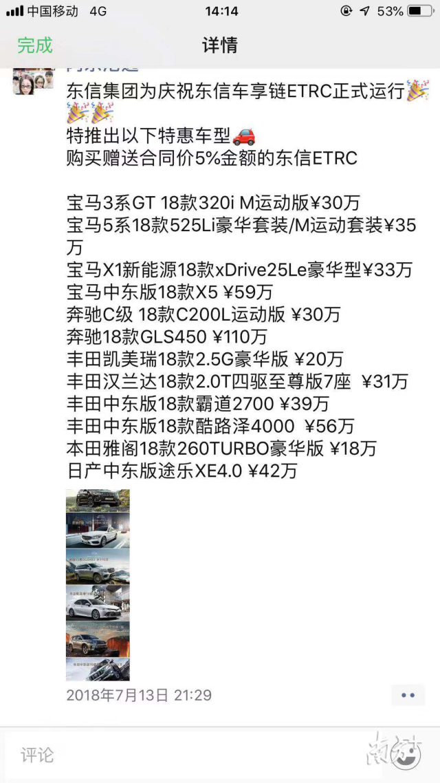 據(jù)不完全統(tǒng)計,目前29名車主通過全款或貸款方式購買新車,購車金額從7萬到143萬不等,總金額達1400多萬。多位事主提供的轉(zhuǎn)賬記錄顯示,他們轉(zhuǎn)賬對象不是東信車行,而是各種五花八門的賬戶,既有公司員工個人賬戶、也有其他公司賬戶。