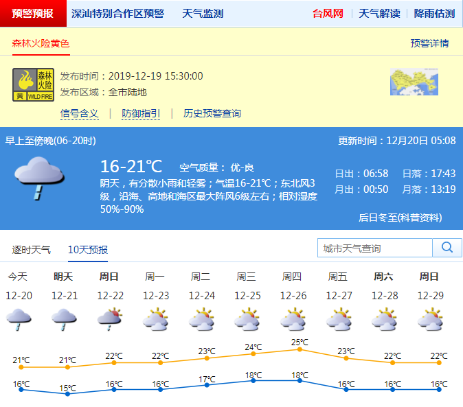 深圳今日最低氣溫14℃左右 森林火險(xiǎn)紅色預(yù)警信號(hào)降為黃色