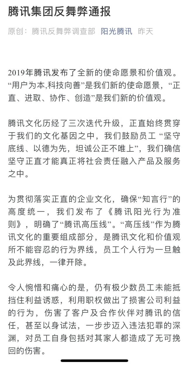 以下為《騰訊集團反舞弊通報》中的典型案例: