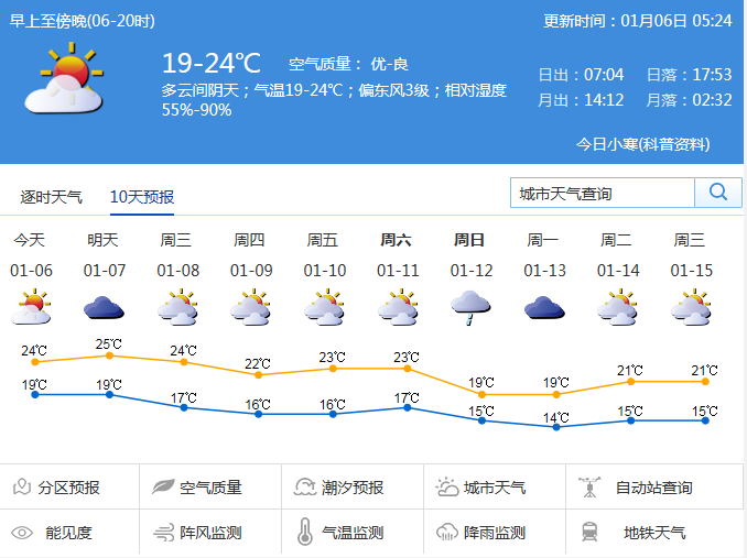 見圳客戶端·深圳新聞網(wǎng)2020年1月6日訊 據(jù)深圳市氣象臺消息,預(yù)計(jì)本周初深圳多云間陰天,早晚有零星小雨和輕霧;周三至周四受弱冷空氣影響,沿海和高地陣風(fēng)6~7級,早晚清涼;周五至周六多云,氣溫回升,周日受冷空氣影響,氣溫再次下降。