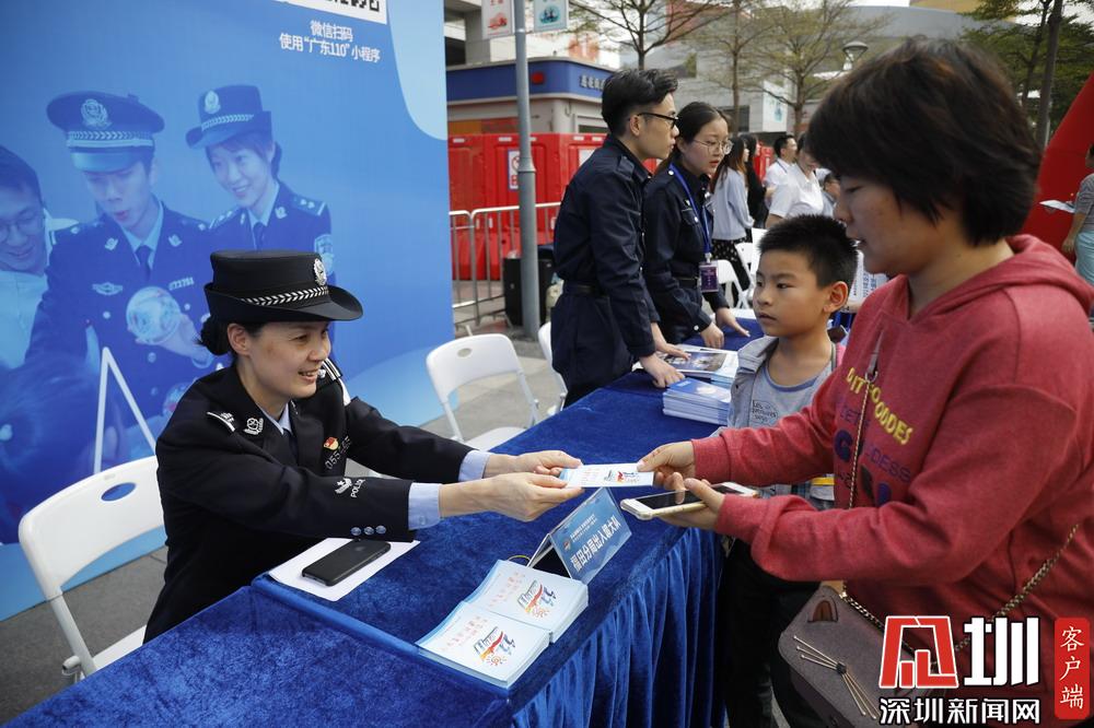 深圳公安民警現(xiàn)場(chǎng)發(fā)放宣傳材料。