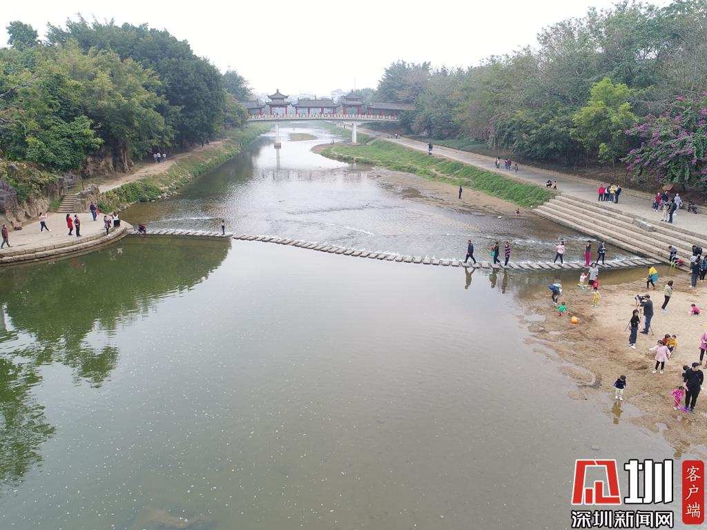 許多家長帶著孩子到河邊游玩。
