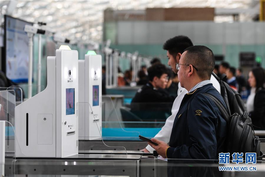 1月15日,旅客在深機(jī)場(chǎng)圳出發(fā)大廳安檢通道體驗(yàn)自助查驗(yàn)證件。新華社記者毛思倩攝