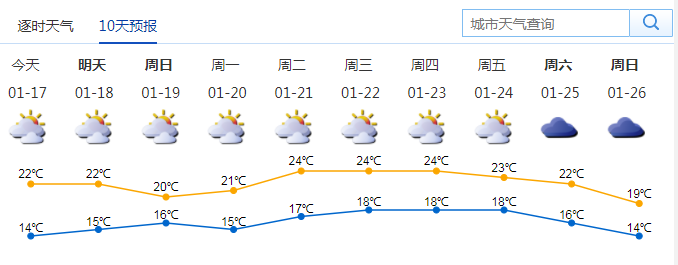 最低氣溫降至12-13℃,伴有小雨和霧;其余時(shí)段多云為主,可見陽(yáng)光。