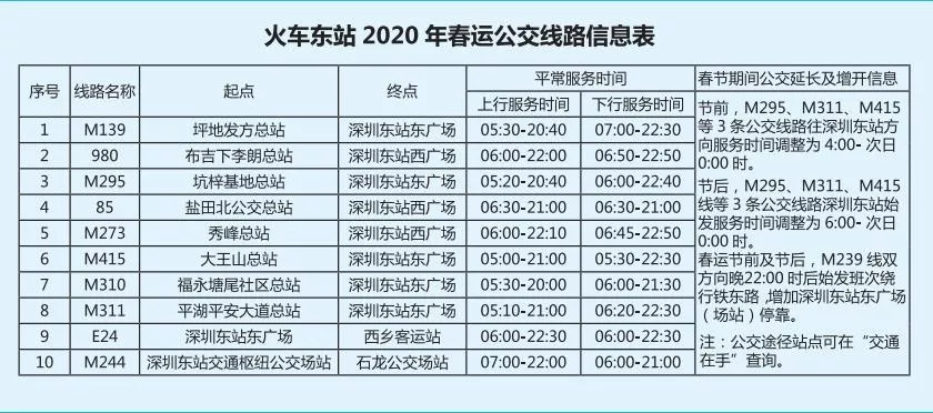 見圳客戶端·深圳新聞網(wǎng)2020年1月20日訊 又將迎來離深高峰,為方便大伙趕高鐵火車,深圳的公交地鐵都開啟最強加班模式,延長服務時間。很多小伙伴就很關(guān)心,途經(jīng)各大火車站的公交線有哪些?運營的時間是幾點?