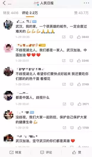 我們抓緊時(shí)間防疫,也抓緊時(shí)間去溫暖身邊受疫情傷害的湖北人、廣東人、浙江人……言語雖輕,但一聲聲加油足以撐起抗疫信心。