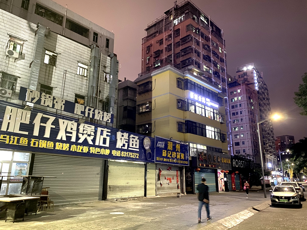 治愈了無數(shù)深圳人味蕾的梅林美食一條街行人稀少,不少店鋪大門緊閉