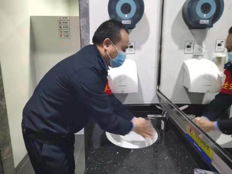 由于現(xiàn)在是肺炎疫情嚴(yán)重防控期間,按照車隊(duì)要求,邱華出車前先去洗手間把手洗干凈,然后接受問(wèn)詢告知、酒精測(cè)試、測(cè)量體溫、配戴口罩等。