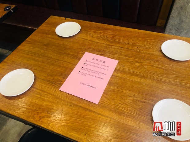 餐廳在門口處配備體溫測試儀,隨時(shí)對(duì)進(jìn)入餐廳的人員進(jìn)行體溫監(jiān)測。在人員疫情防控方面,小芙蓉餐廳的員工都是留深人員為主,要求員工每天在晨檢時(shí)測量體溫及進(jìn)行手部消毒后方能上崗,每天測量體溫2次、更換口罩2次;在顧客進(jìn)來餐廳用餐前先要求其要在門口處測量體溫,之后要對(duì)鞋子進(jìn)行消毒后方可進(jìn)店;當(dāng)外賣小哥過來餐廳取餐時(shí)則要求其在門口等候取餐,并為其測量體溫。此外,餐廳還在每張桌子上貼有防疫公告,以提醒進(jìn)店用餐的顧客注意自身防護(hù)。