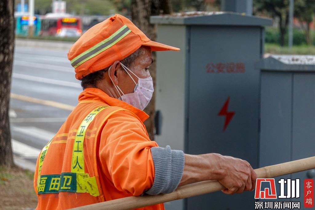 環(huán)衛(wèi)大叔正在做清潔,拎桿的手臂看起來(lái)很有力量