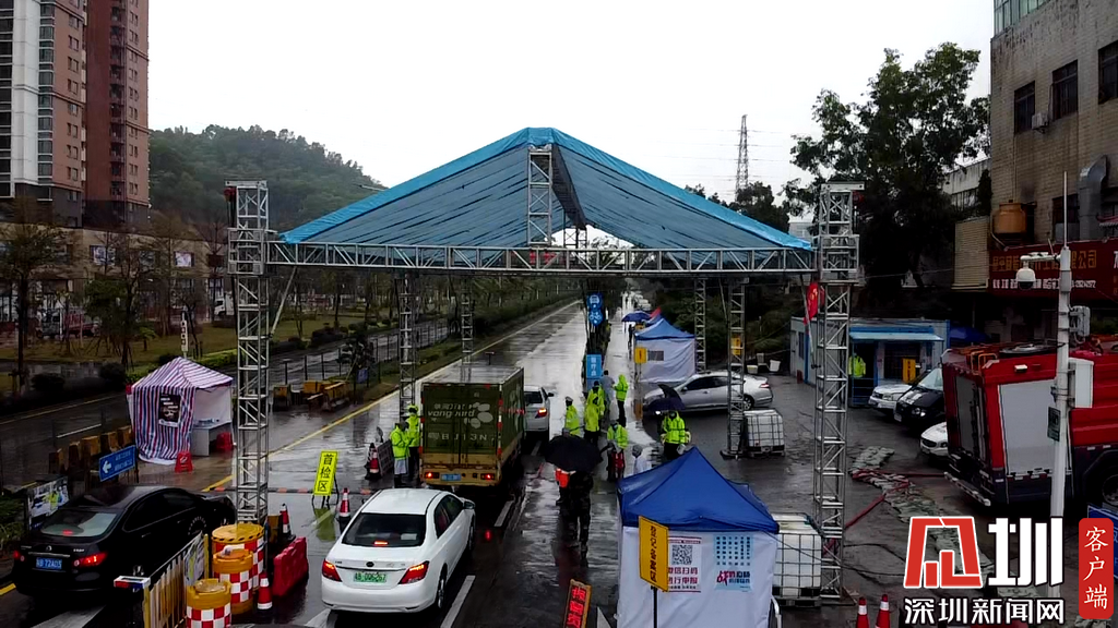 根據(jù)天氣降雨預警,布吉街道經(jīng)科辦和后勤連夜奮戰(zhàn),在鳳凰祥新西卡點搭建起長20米、寬10米、高5米的臨時雨棚,保障一線奮戰(zhàn)干部職工以及過往市民開窗檢測的方便。