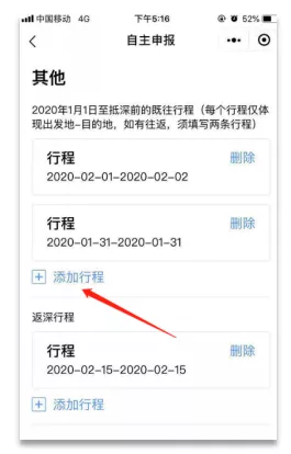第二步:添加行程。如有多段行程,請(qǐng)?jiān)邳c(diǎn)擊確定后,再次點(diǎn)擊“添加行程”,添加下一段行程。